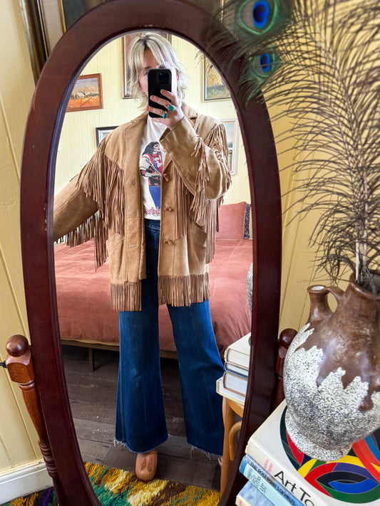 VINTAGE 1980S PIONEER WEAR SUEDE FRINGED WESTERN JACKET XL