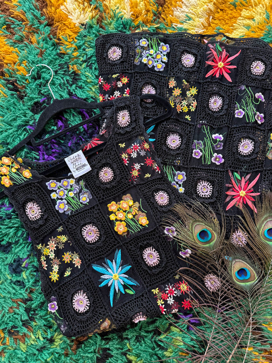VINTAGE 1970S ACRYLIC CROCHET BOBBLE POET SLEEVE HANDMADE MAXI DRESS XL/XXL