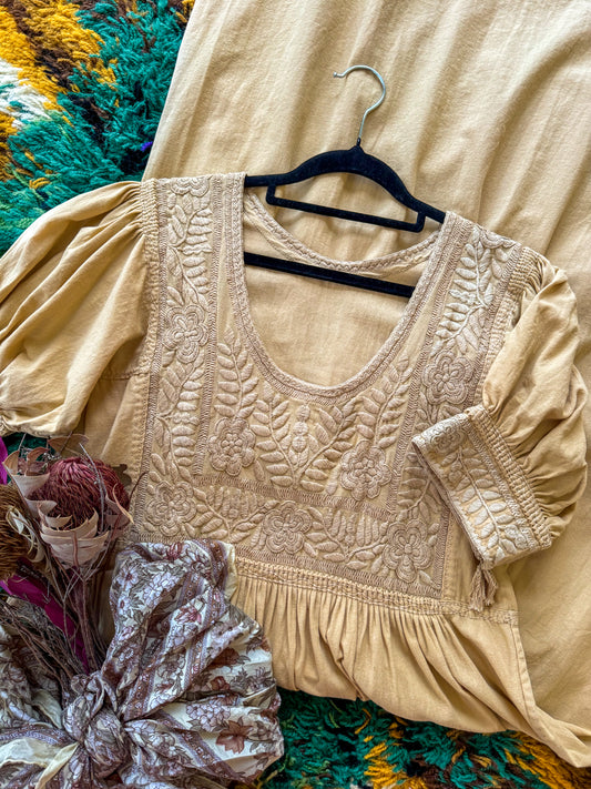 HANDMADE MEXICAN COTTON EMBROIDERED MIDI PEASANT DRESS M