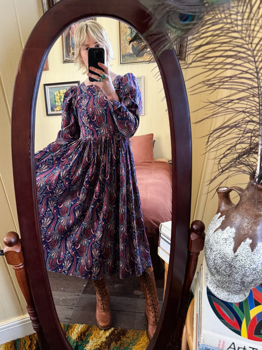 VINTAGE 1980S ENGLISH LAURA ASHLEY COTTON CORDUROY PAISLEY PRAIRIE DRESS S