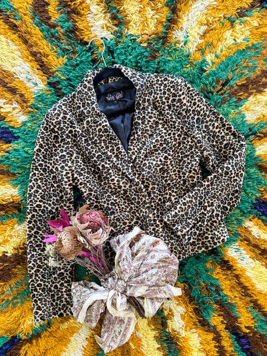 VINTAGE 1990S VERY VERY LEOPARD PRINT VELVET CROPPED BLAZER JACKET S