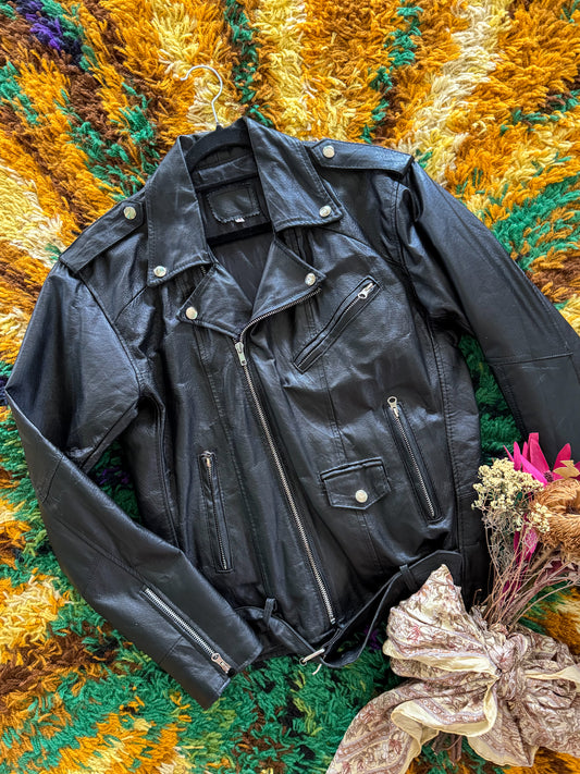 VINTAGE 1980S GIORGIO FIRMANI BLACK LEATHER MOTORCYCLE JACKET M