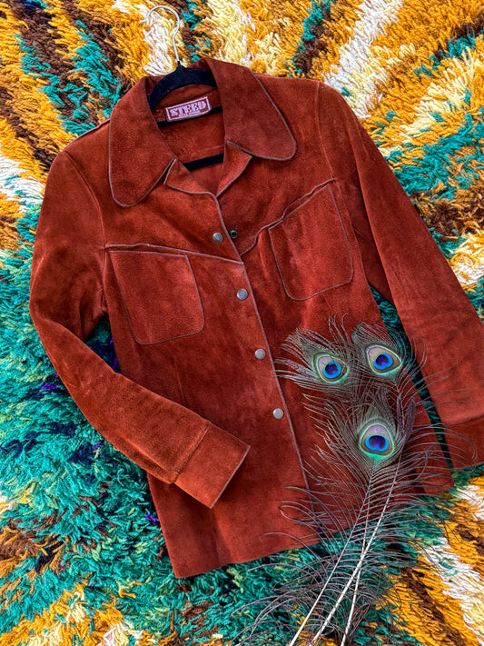 VINTAGE 1970S STEED SUEDE LEATHER FITTED SHIRT JACKET XS