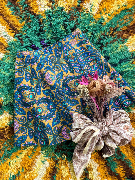 VINTAGE 1970S HANDMADE COTTON PAISLEY PRINT A-LINE MINI SKIRT S/M