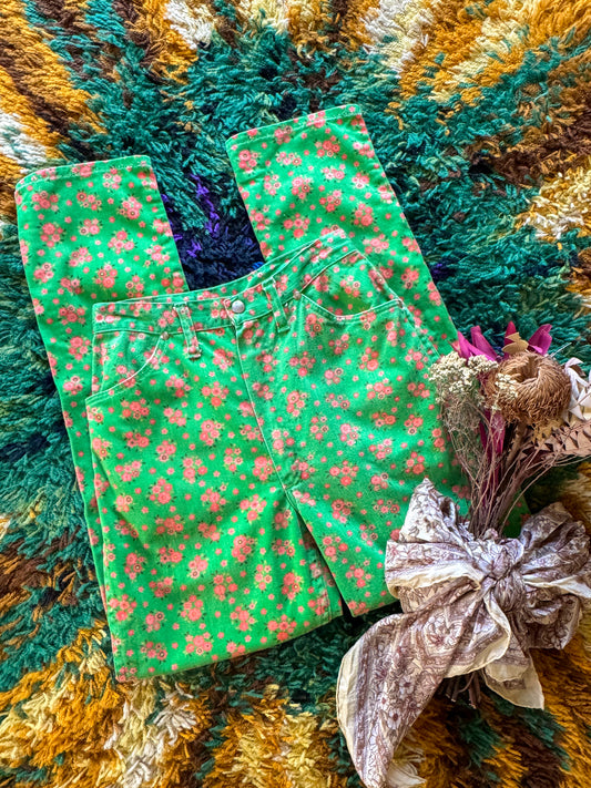 VINTAGE 1970S AMERICAN MISSES WRANGLER COTTON FLORAL PRINT TAPERED JEAN S