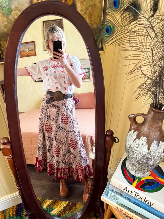 VINTAGE 1970S HUNGARIAN COTTON BLEND EMBROIDERED PEASANT BLOUSE XS/S