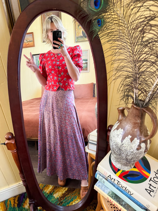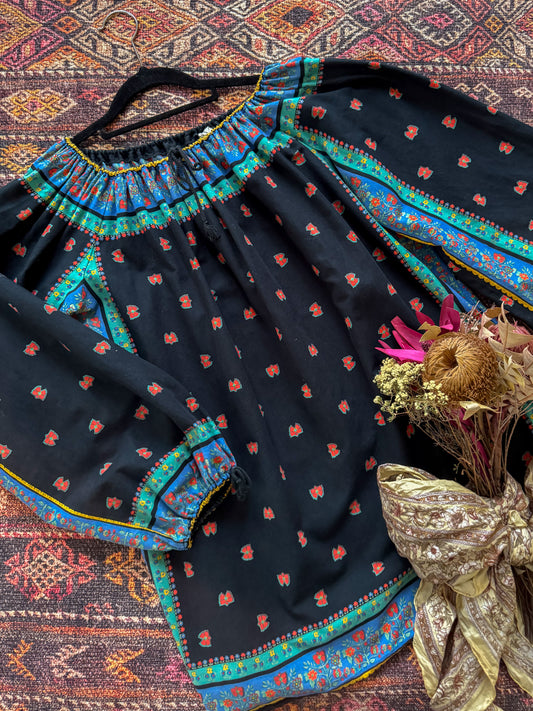 VINTAGE 1970S COTTON PRINTED FOLK PEASANT BLOUSE L