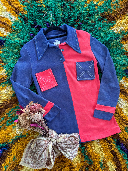 VINTAGE 1960S JULIAN HAYE COLOUR BLOCK COLLARED TUNIC TOP S