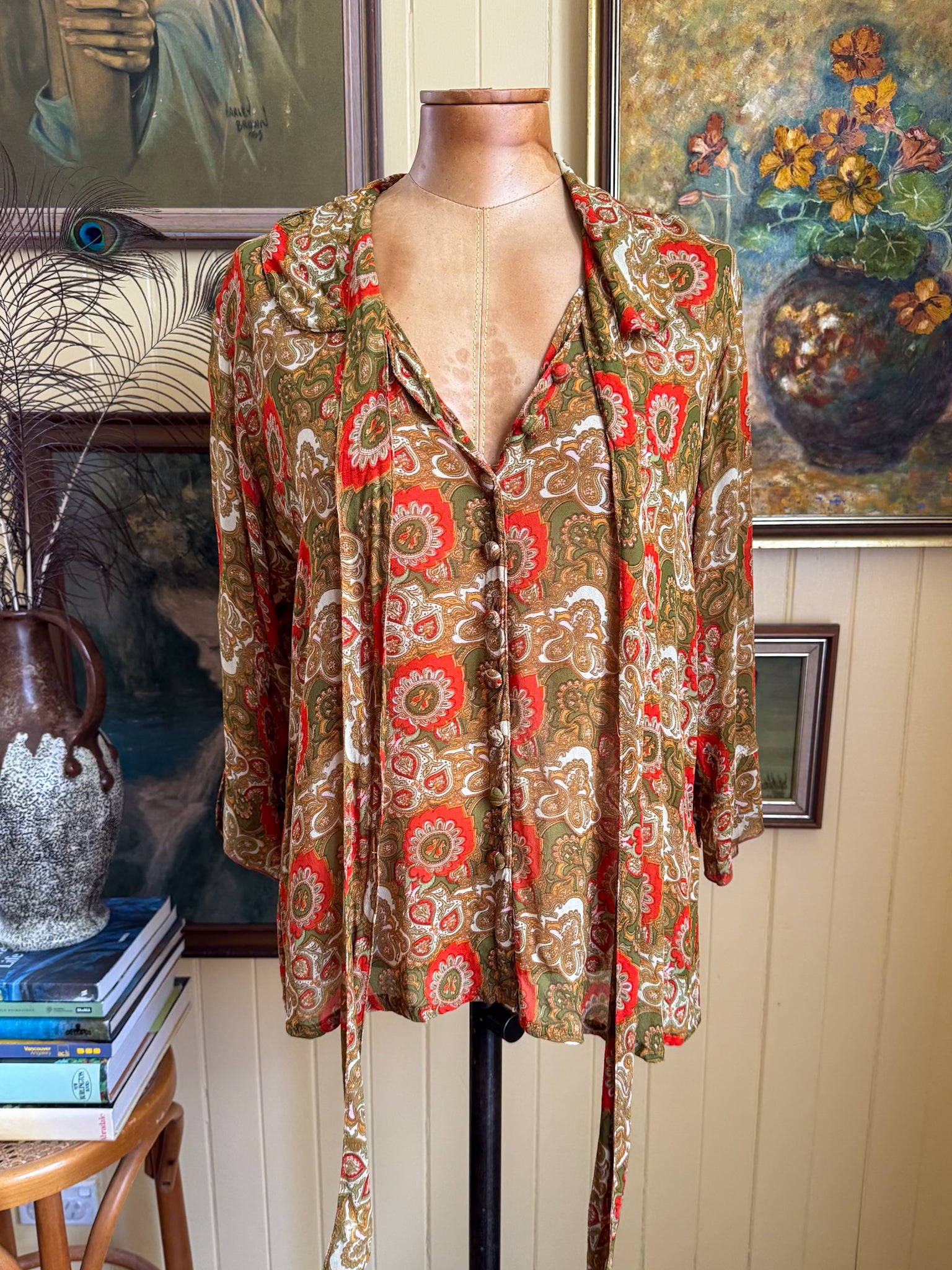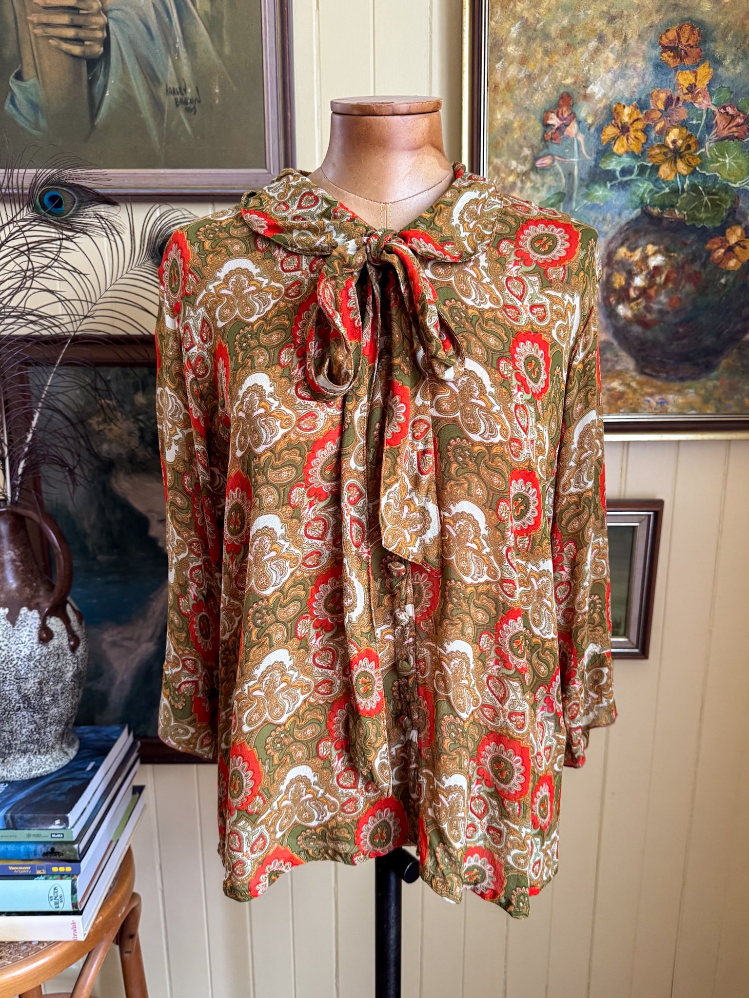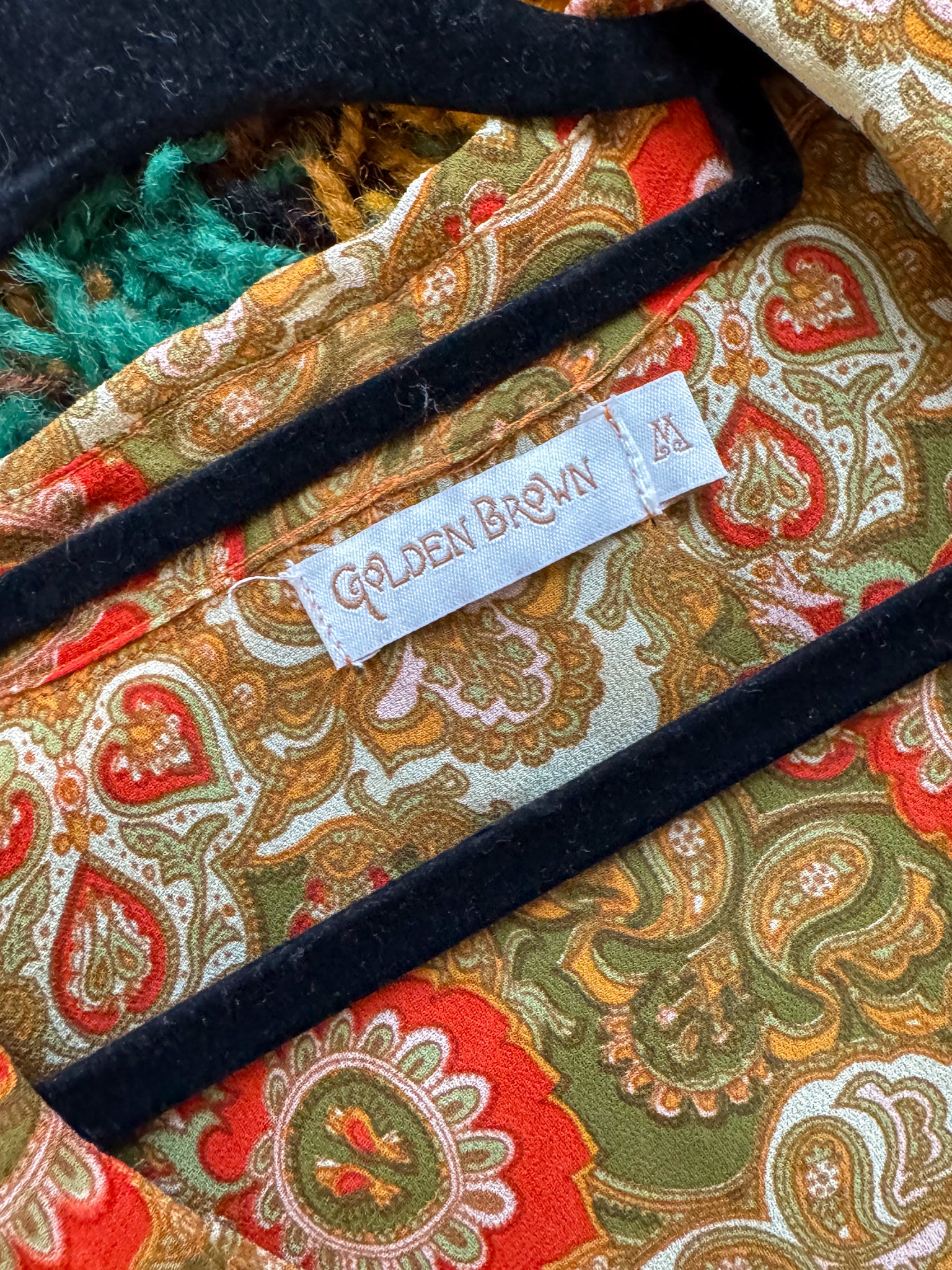 PRELOVED GOLDEN BROWN THE LABEL PAISLEY SILK BUTTON THROUGH BLOUSE M