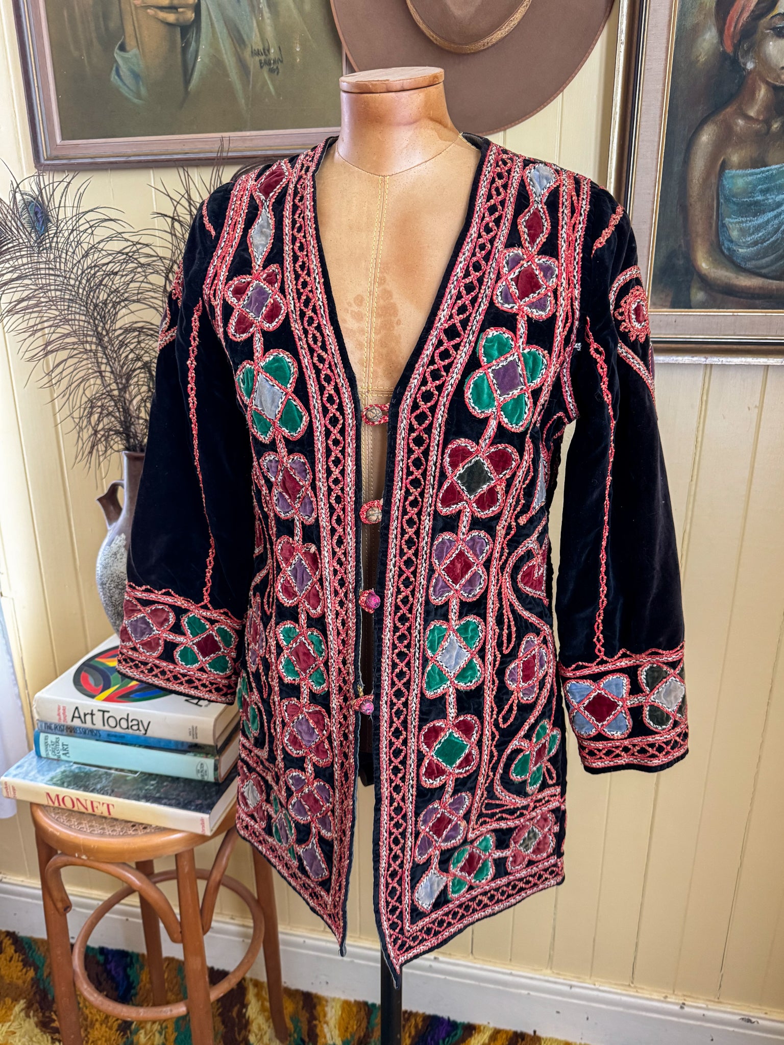 VINTAGE 1960S RARE PAKISTANI HEAVILY EMBROIDERED VELVET JACKET S