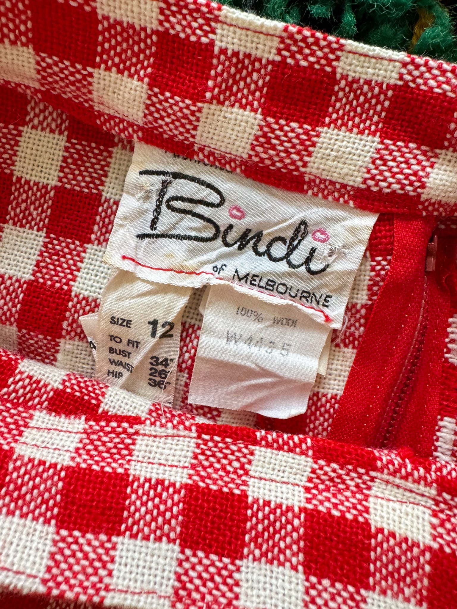 VINTAGE 1970S BINDI OF MELBOURNE WOOL GINGHAM MINI SKIRT S