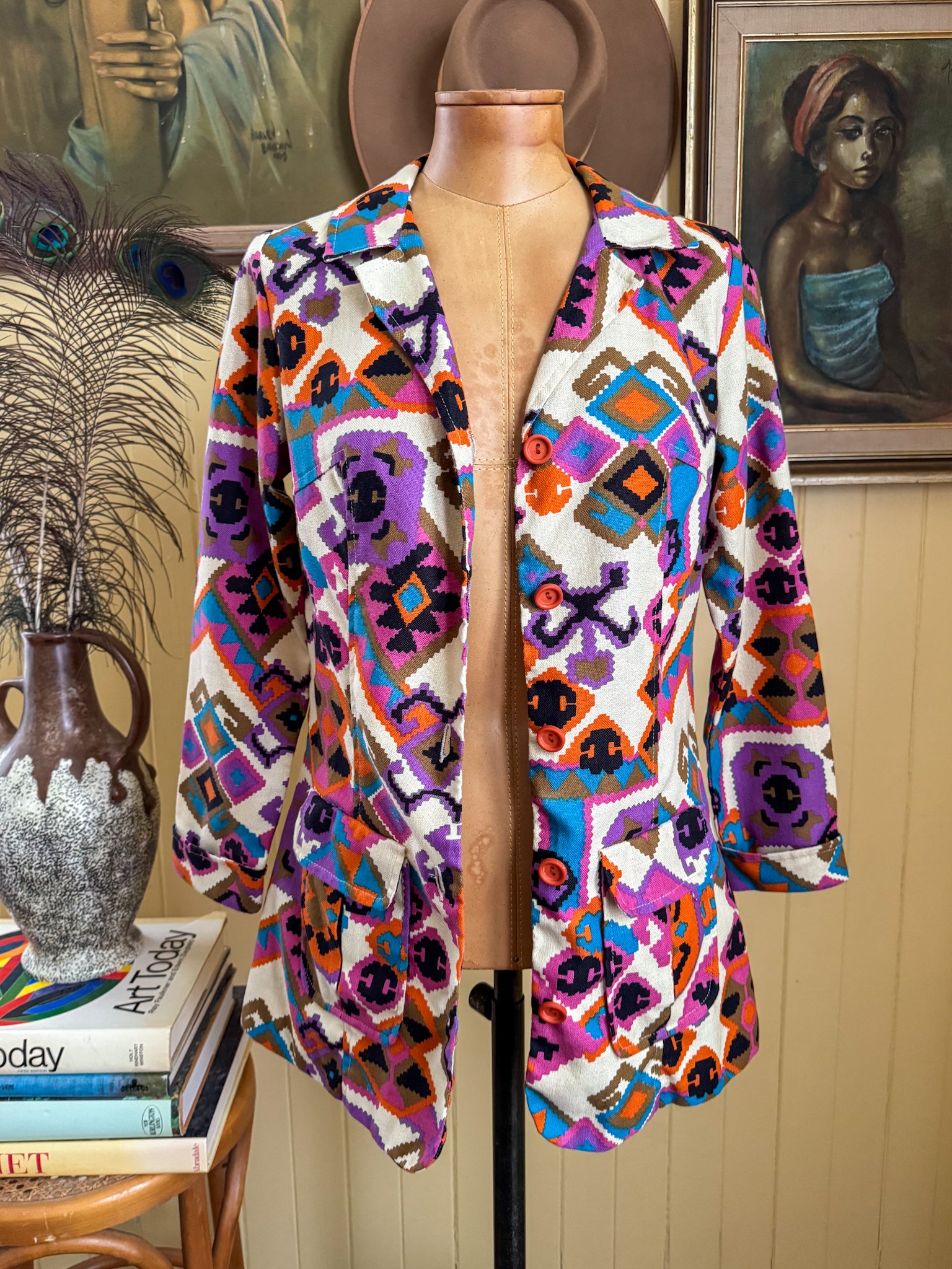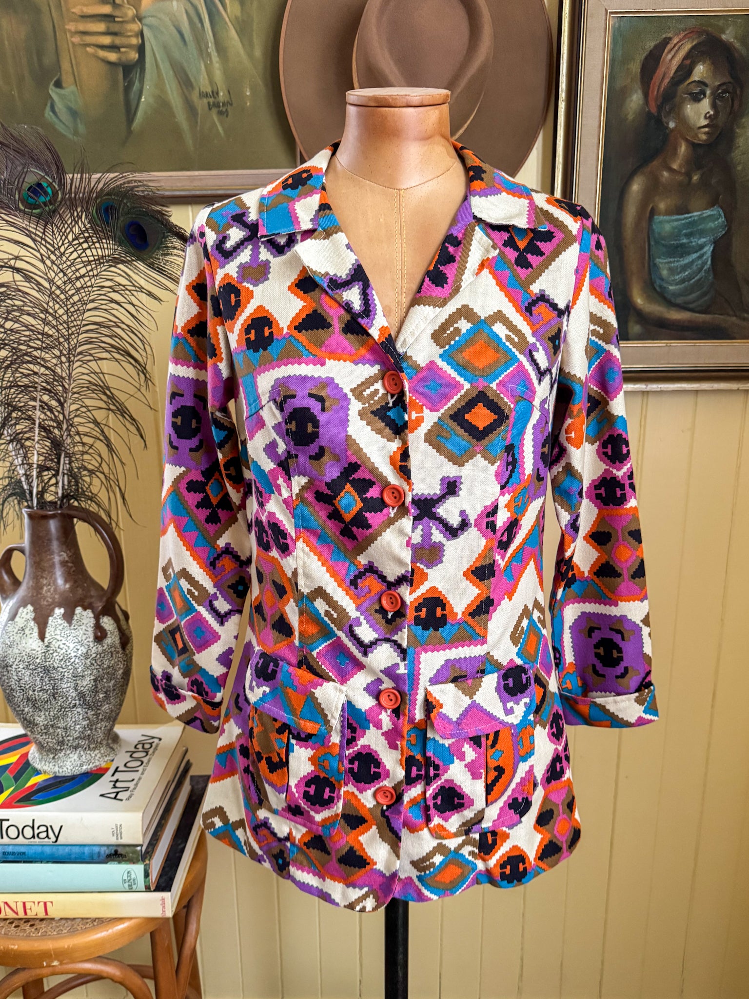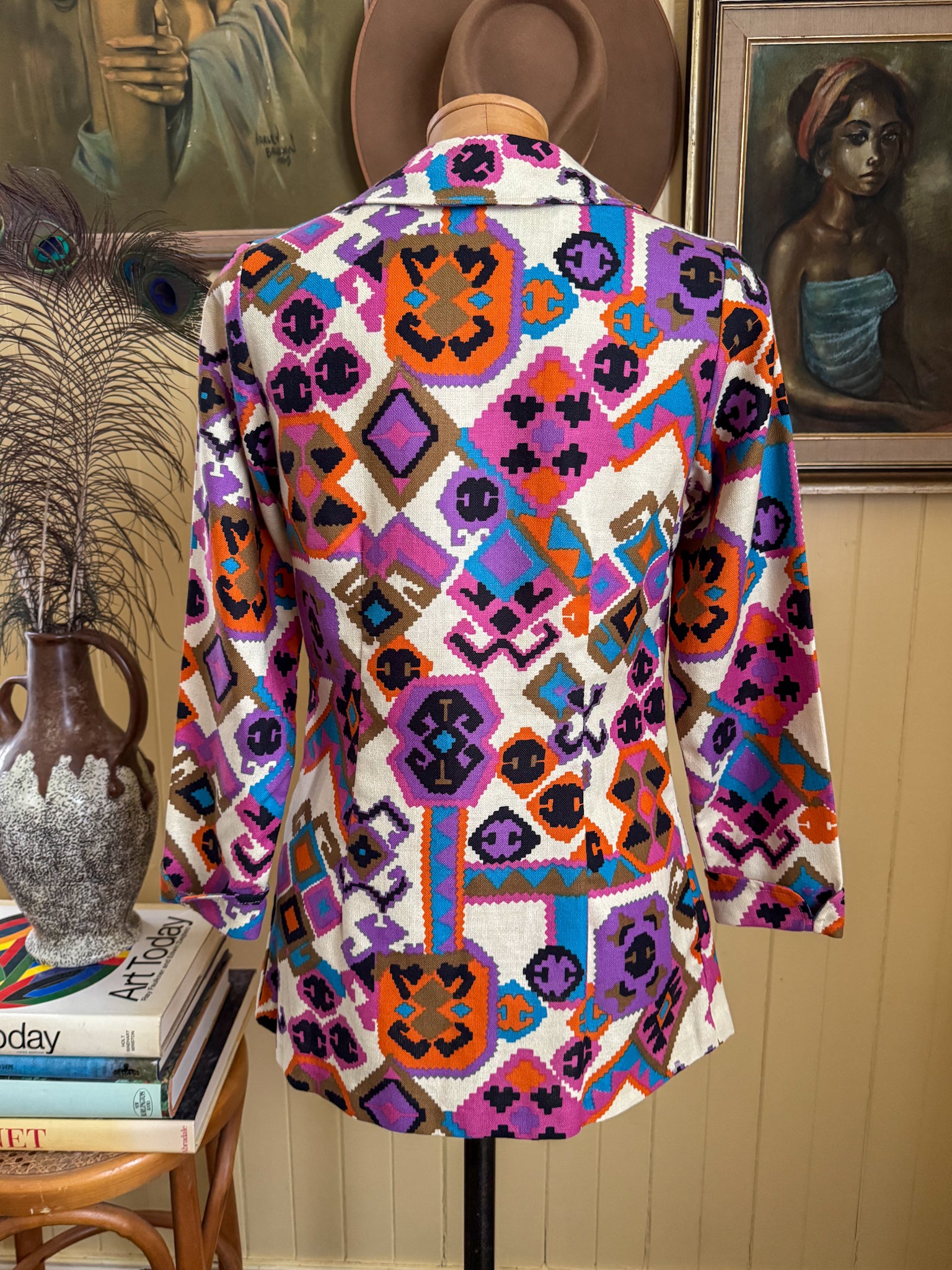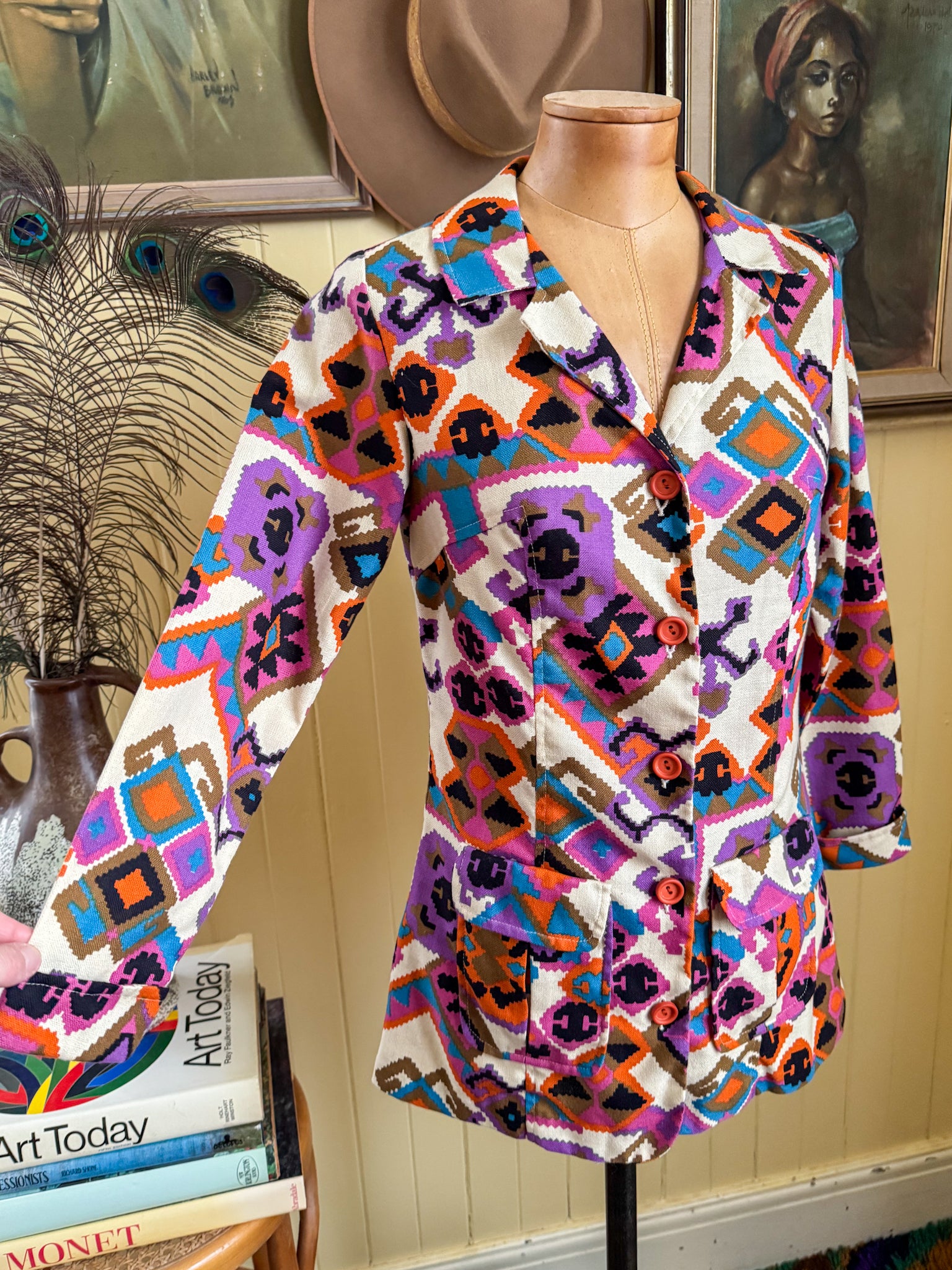 VINTAGE 1970S PSYCHEDELIC GEOMETRIC PRINT FITTED JACKET S