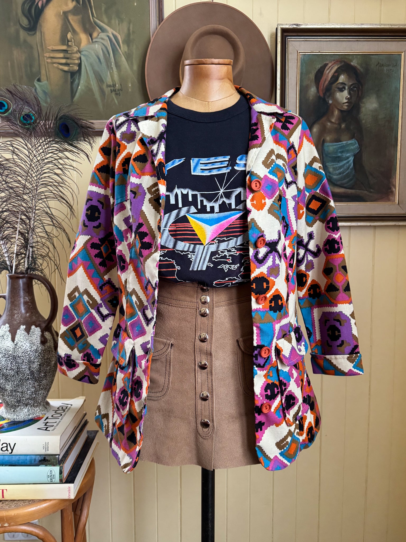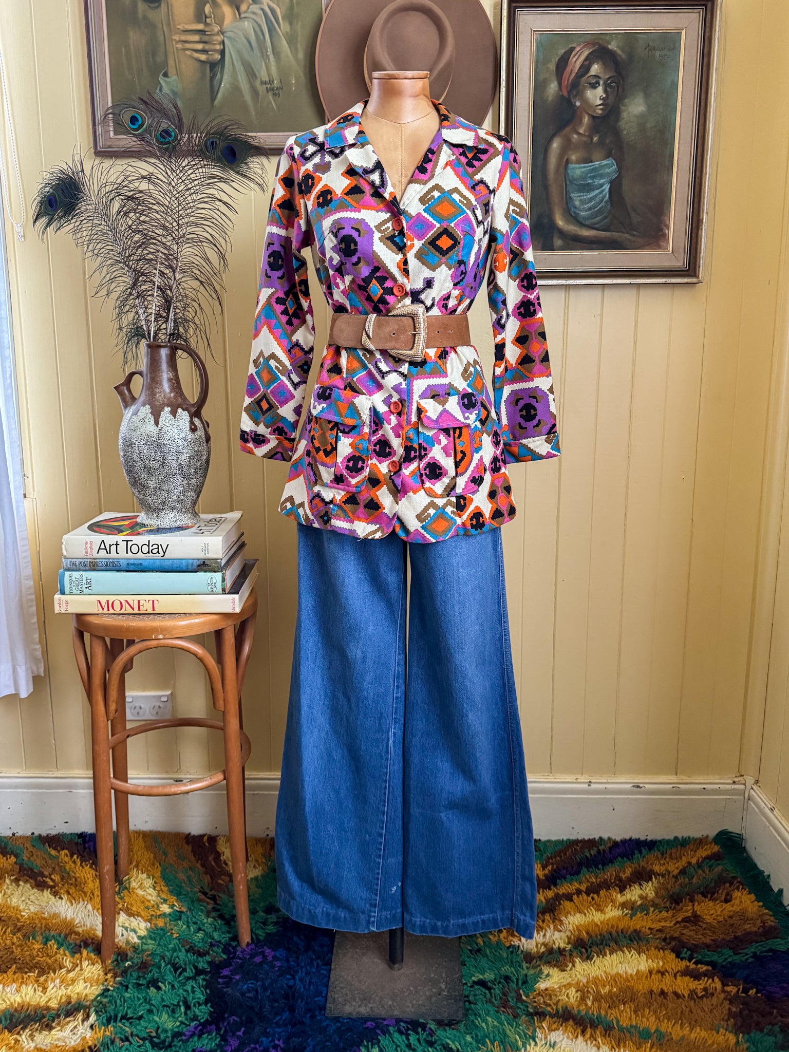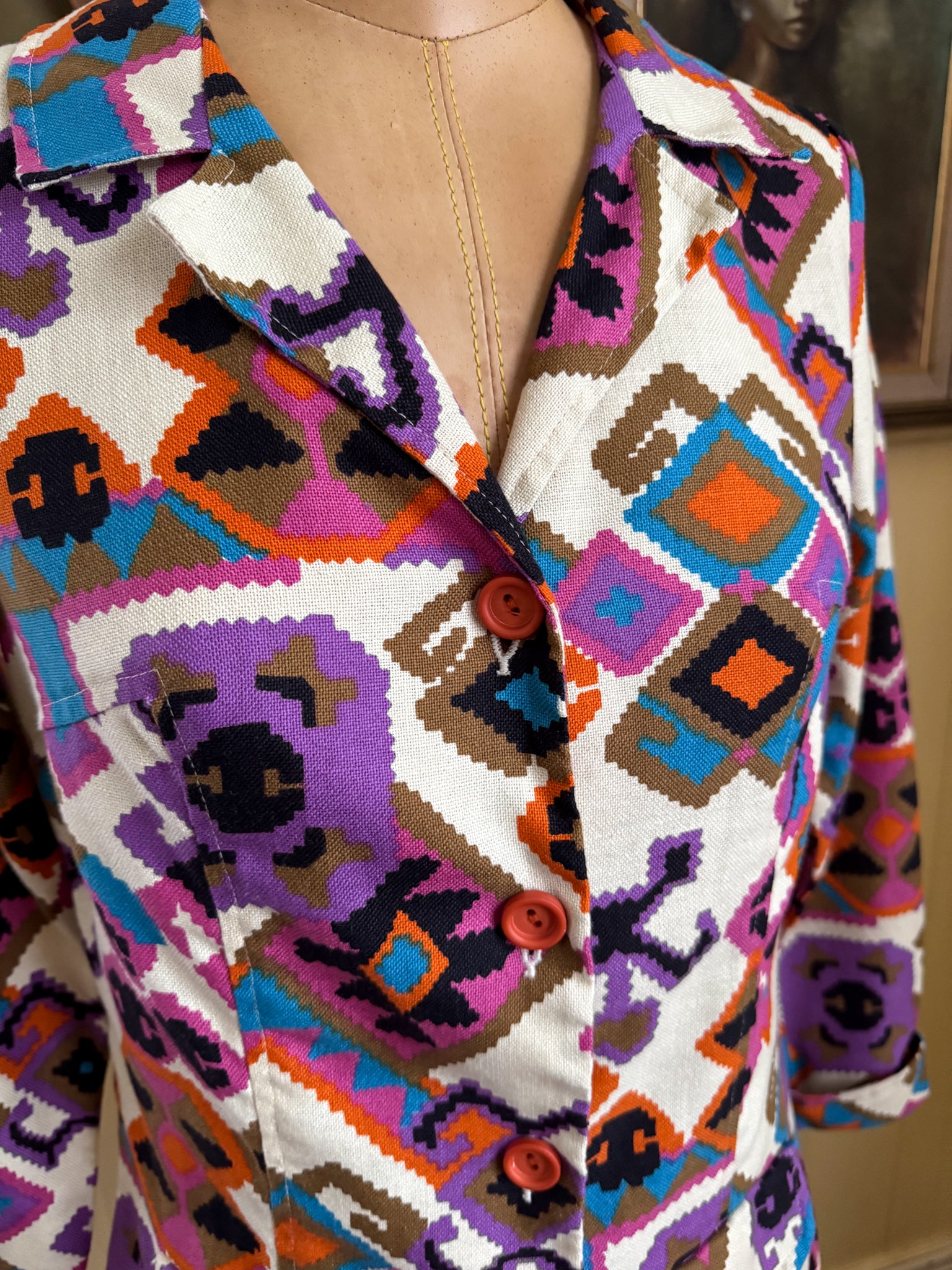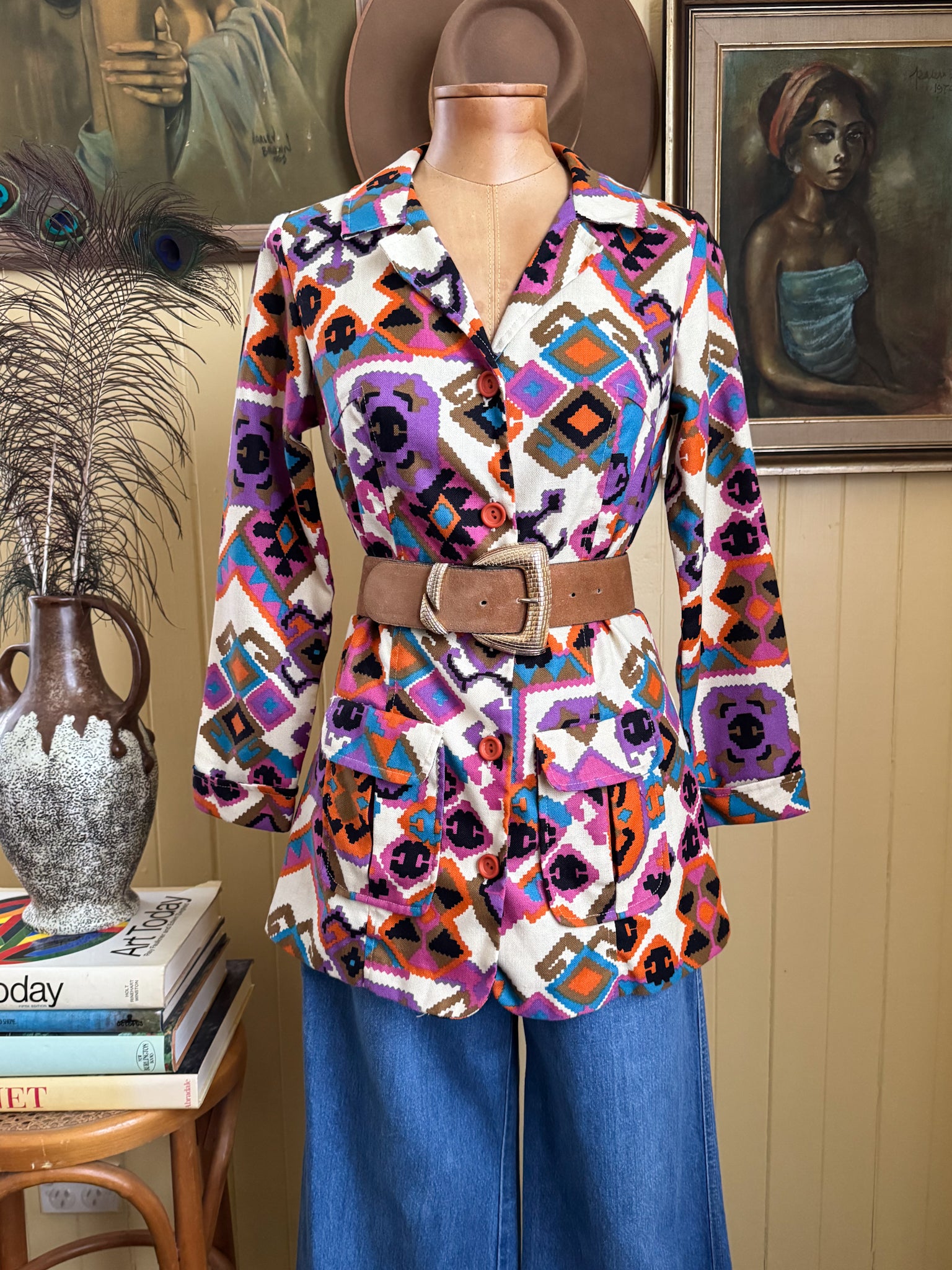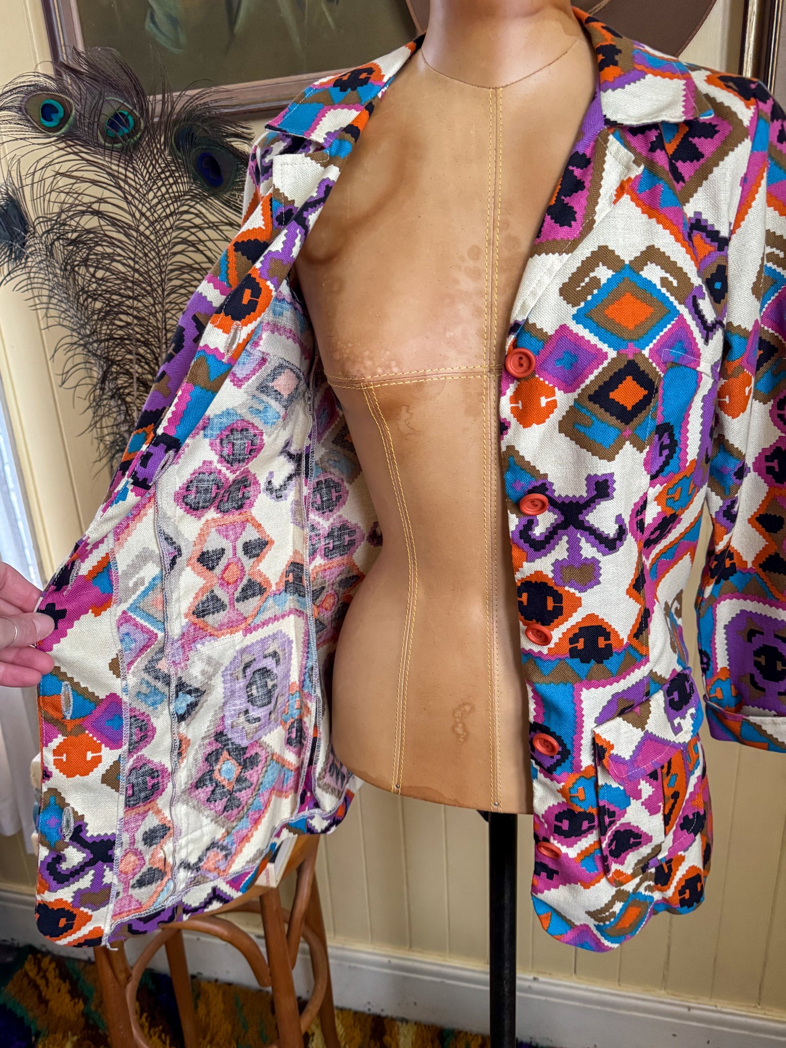 VINTAGE 1970S PSYCHEDELIC GEOMETRIC PRINT FITTED JACKET S