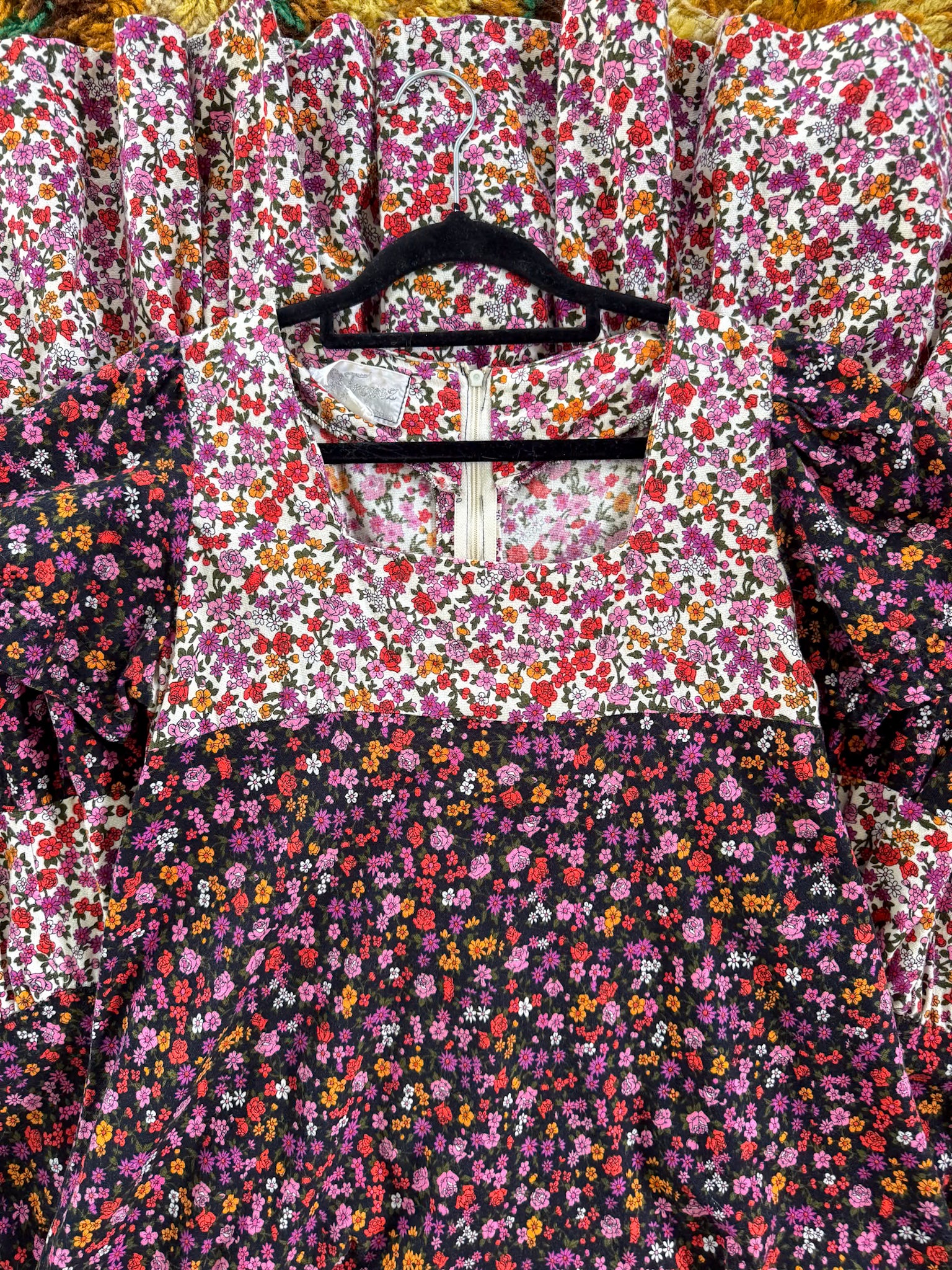 Meet your new favourite vintage day dress. She’s the sweetest in a gorgeous mix of two alternating ditsy floral prints across a lightweight flat cotton fabrication. The sweetest puff sleeves, a square neckline, back zip and a voluminous (and delightfully swishy) tiered maxi length skirt completes the look. Perfect.