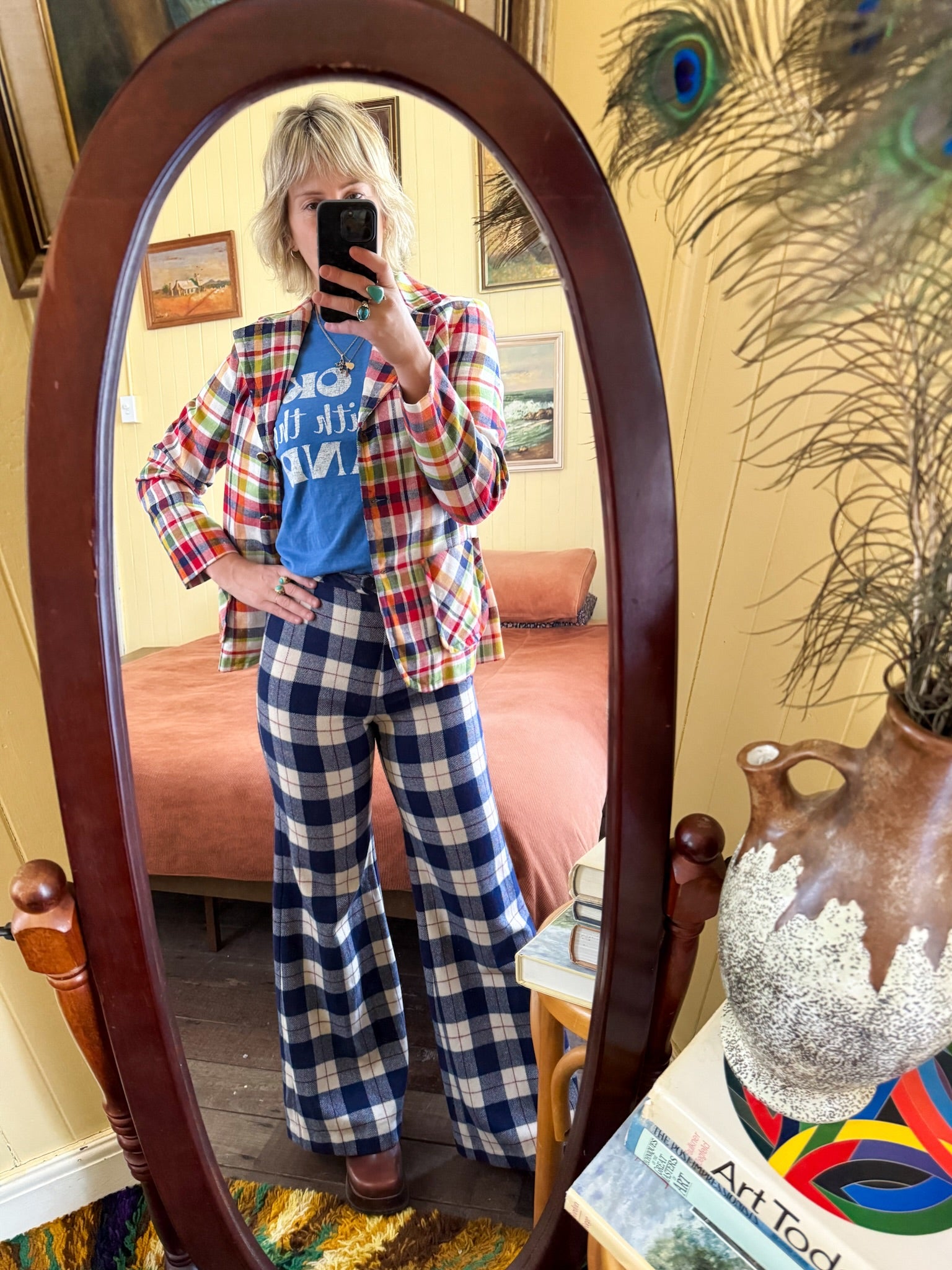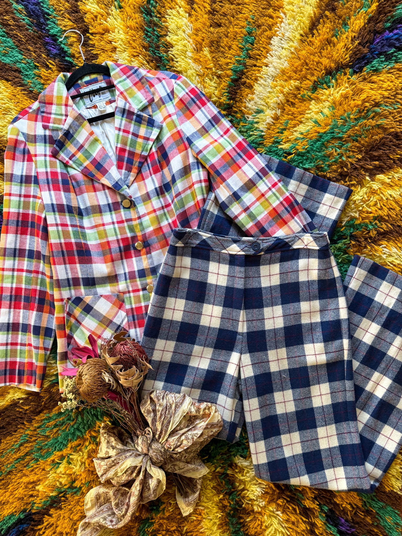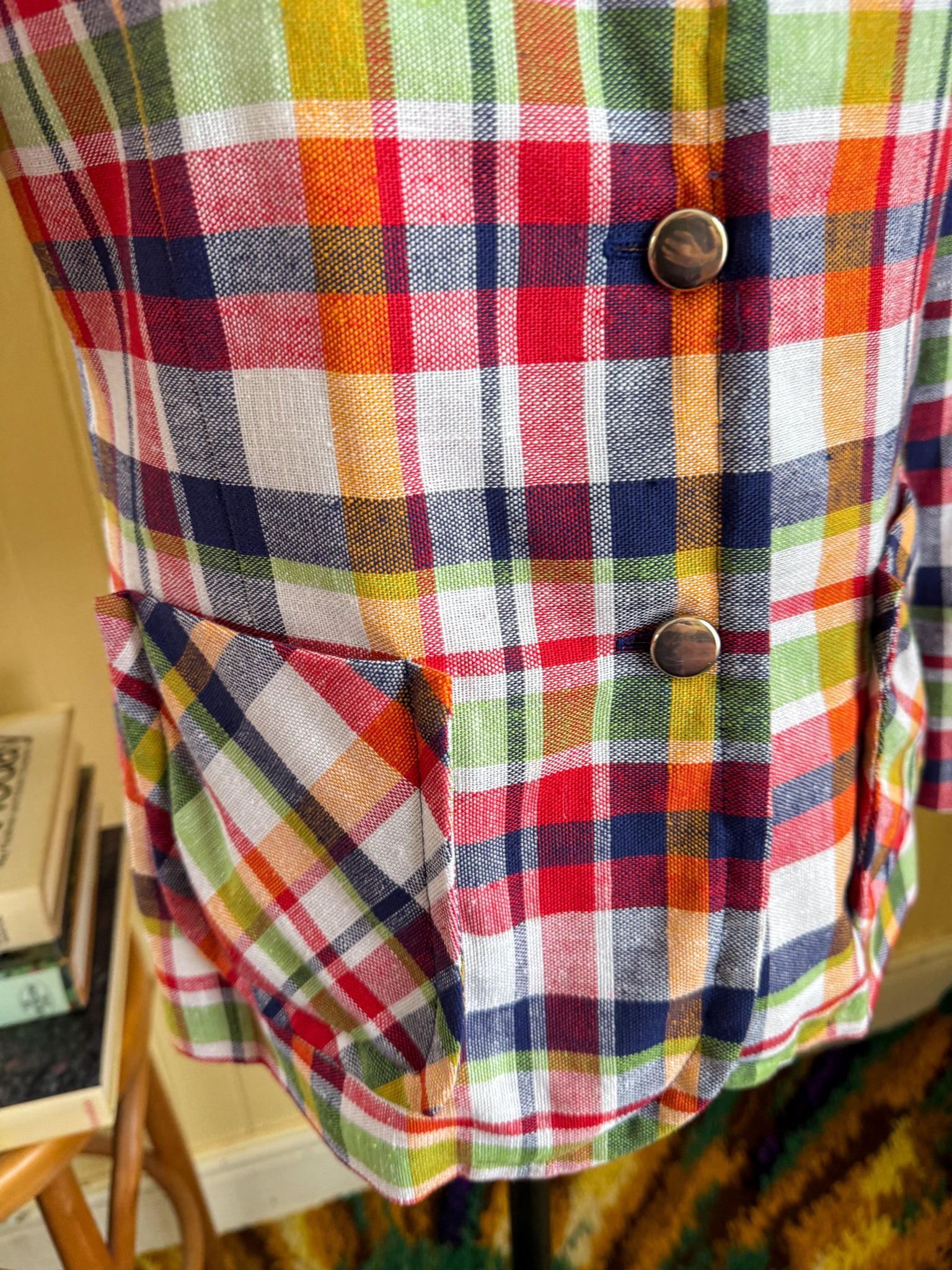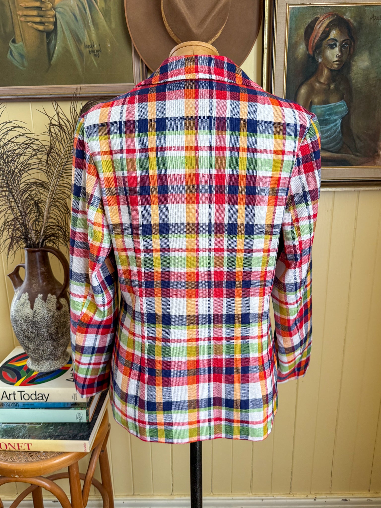 VINTAGE 1970S VIRGO COTTON PLAID DAGGER COLLAR BLAZER JACKET M