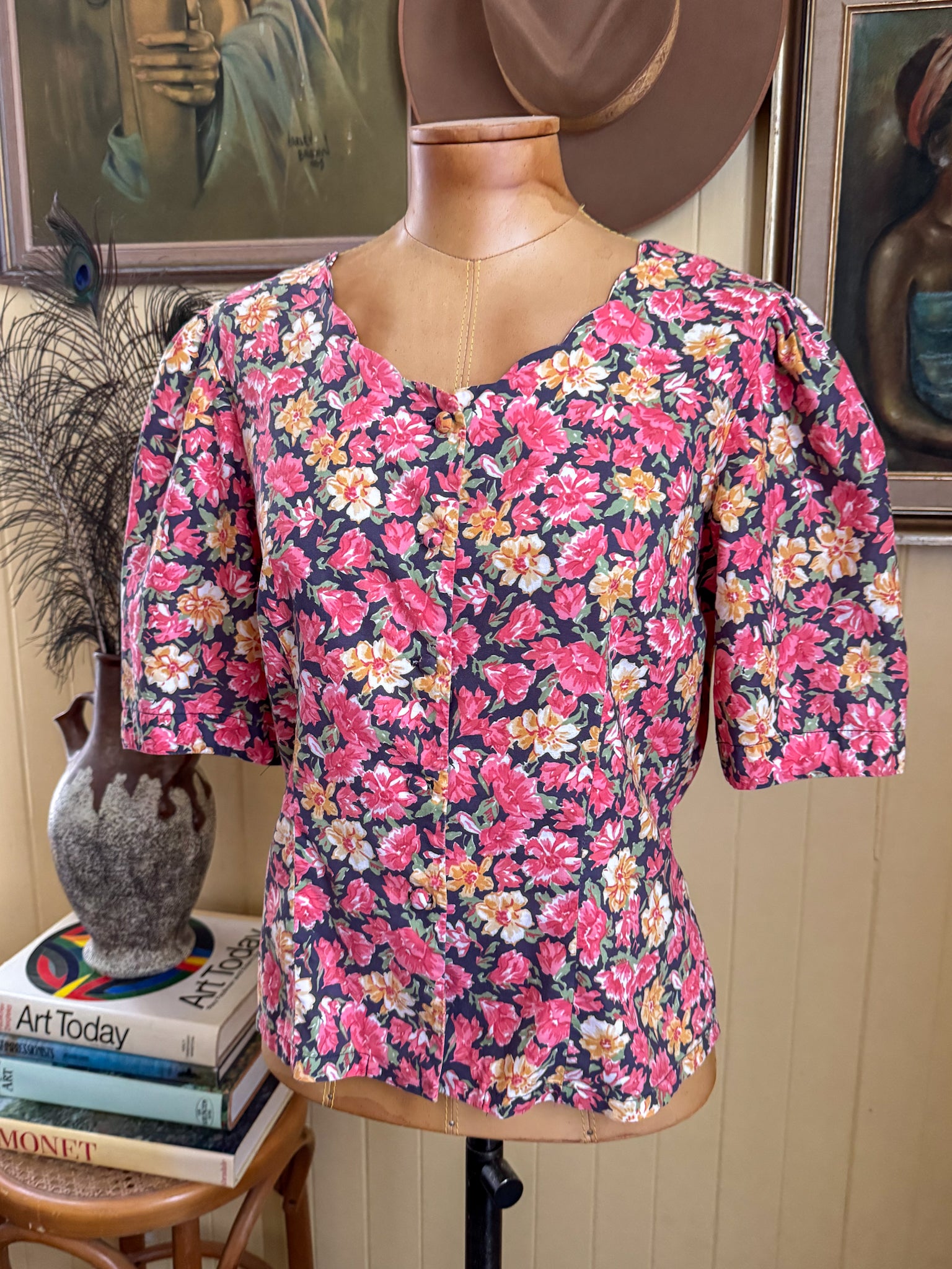 VINTAGE 1980S AUSTRALIAN LAURA ASHLEY COTTON FLORAL PRINT BLOUSE M