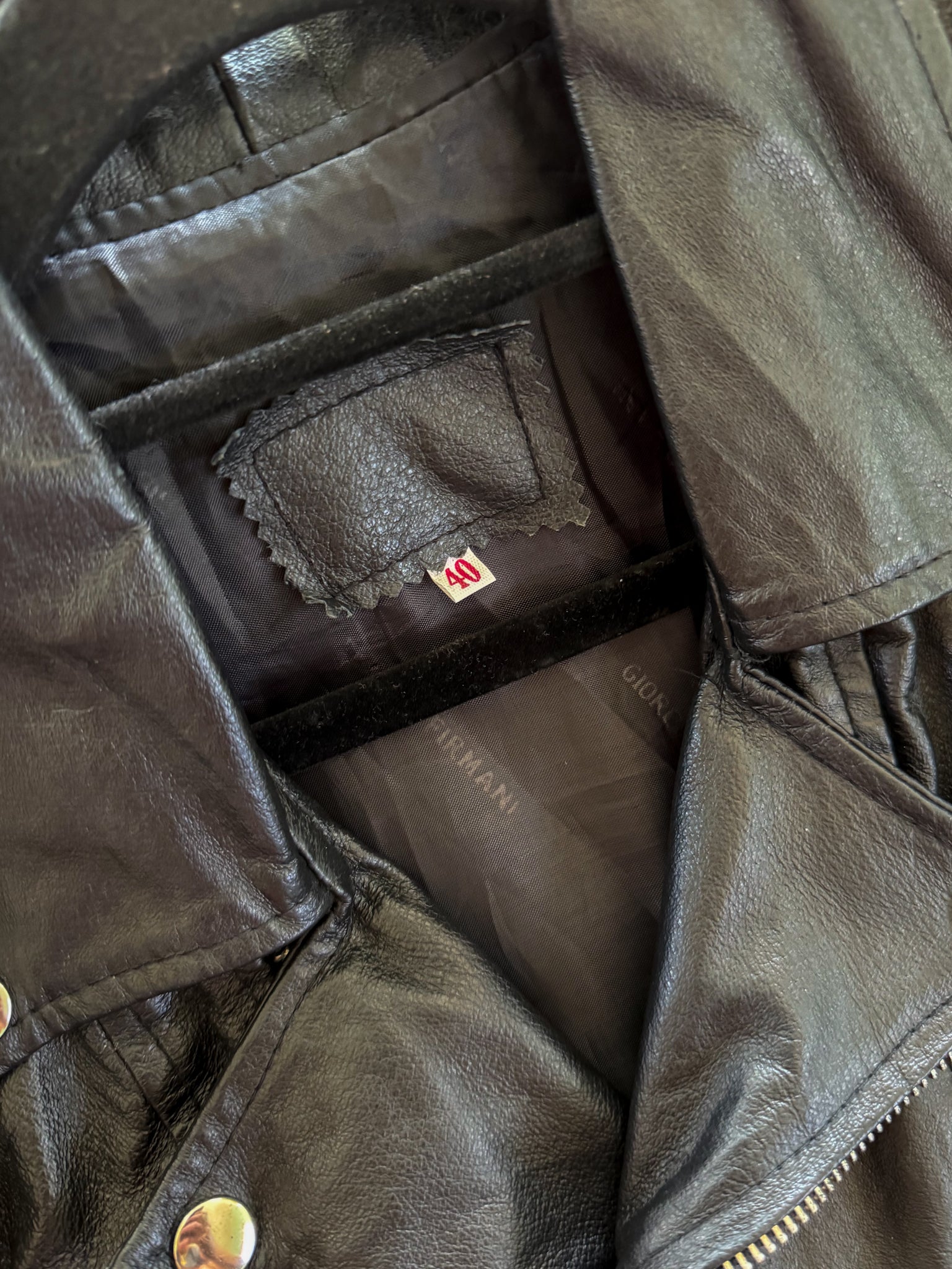 VINTAGE 1980S GIORGIO FIRMANI BLACK LEATHER MOTORCYCLE JACKET M