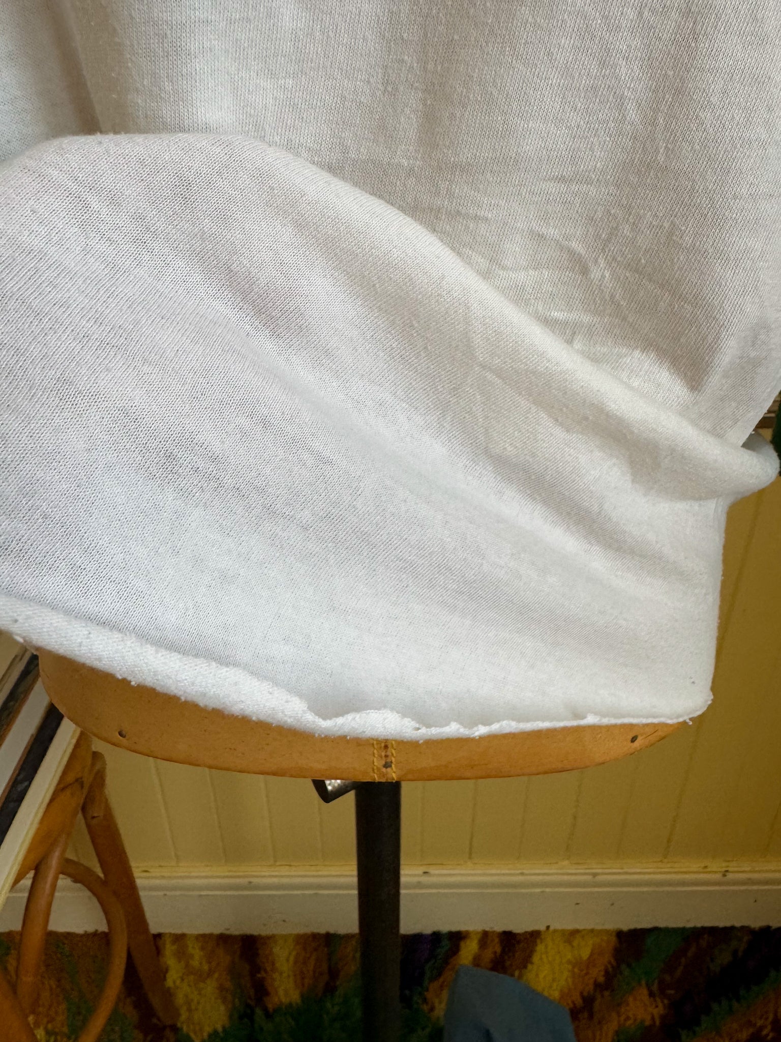 Condition: Good worn vintage condition with some visible wear, there's some pilling and light marks throughout and some fade/wear to the graphic but all in all it’s a super groovy tee. The bottom hem has been cut at some point as it’s now a raw unfinished edge. Please check all images as it is sold in as/is condition.