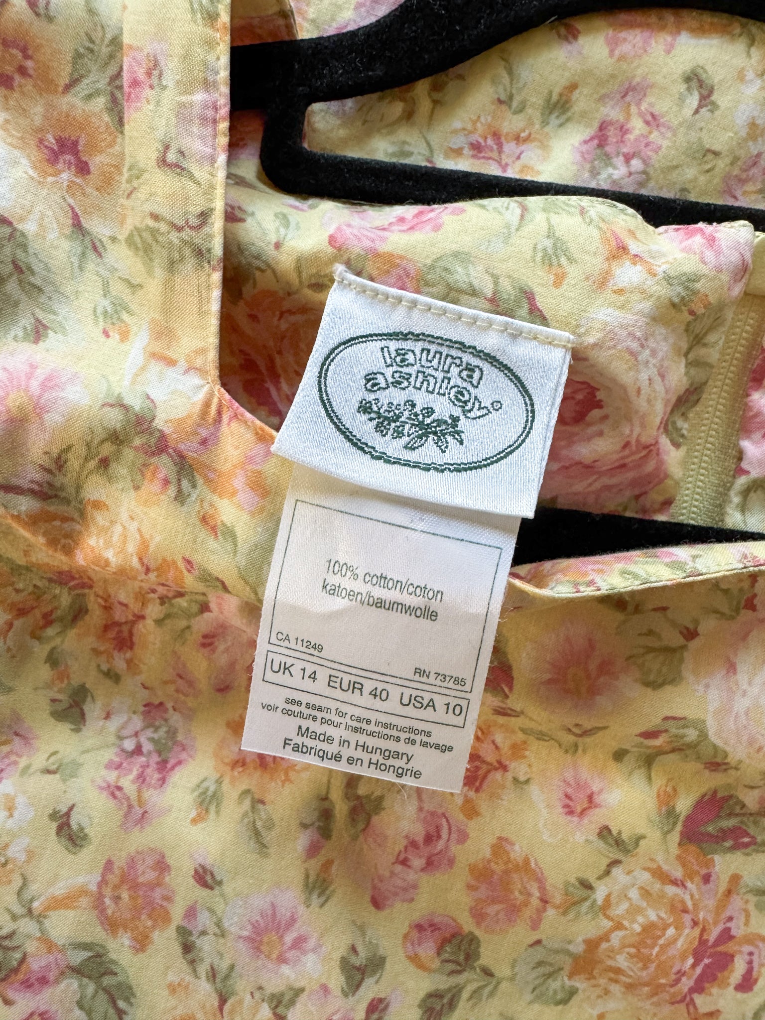 Oh, is there anything more divine than a classic Laura Ashley prairie dress? This one has all the beautiful feminine features, cut in a lovely soft pure cotton fabrication in a stunning pale yellow ditsy floral print, a square neckline, the sweetest puff sleeves, a fitted waist and a full, swirly midi length skirt with soft pleating detail. She is cottage core personified, the perfect spring dress.