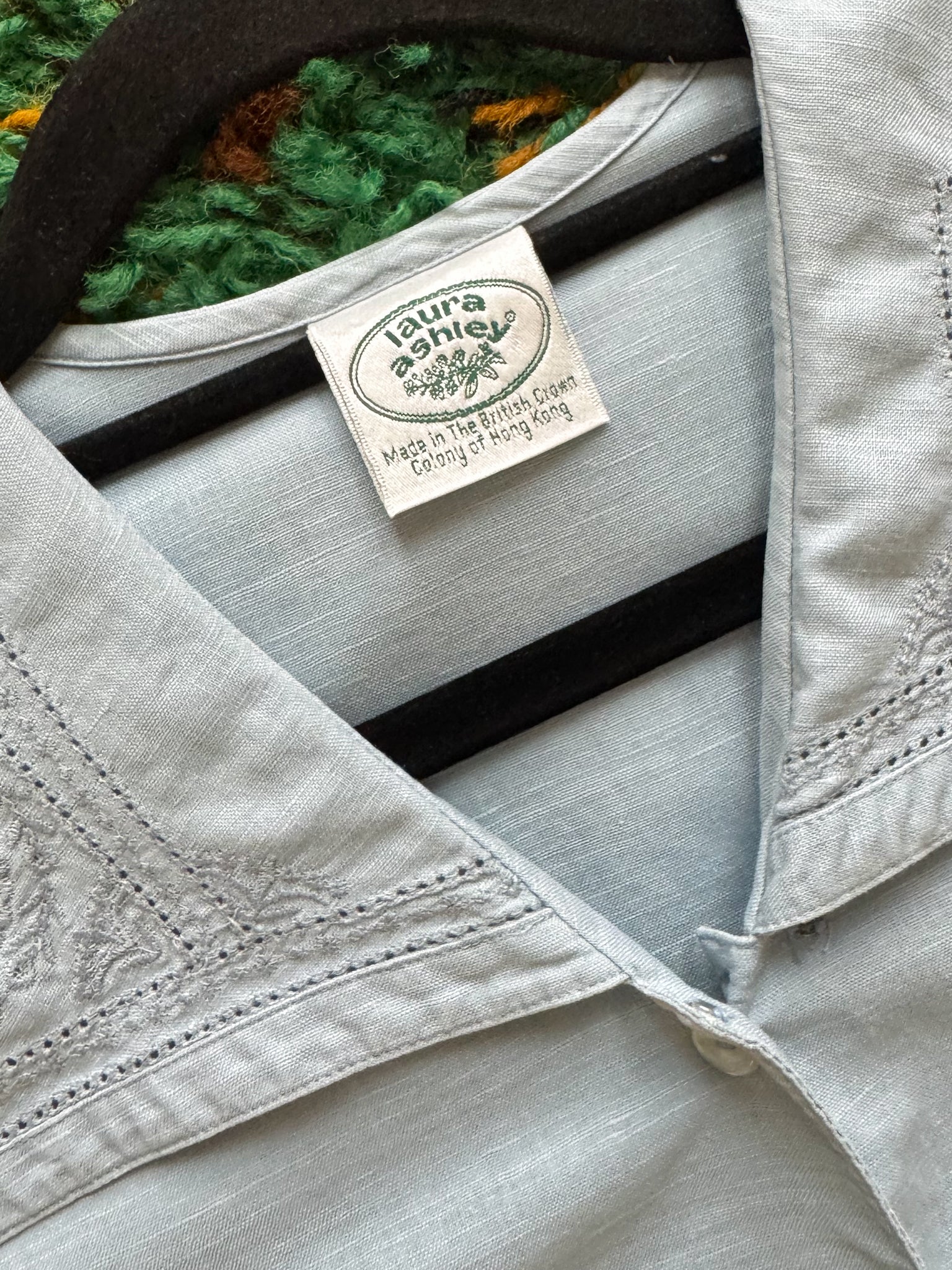 VINTAGE 1990S LAURA ASHLEY LINEN EMBROIDERED SAILOR COLLAR BLOUSE S/M