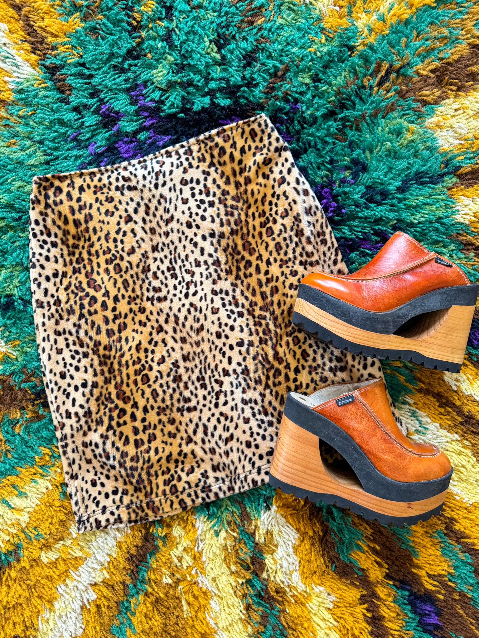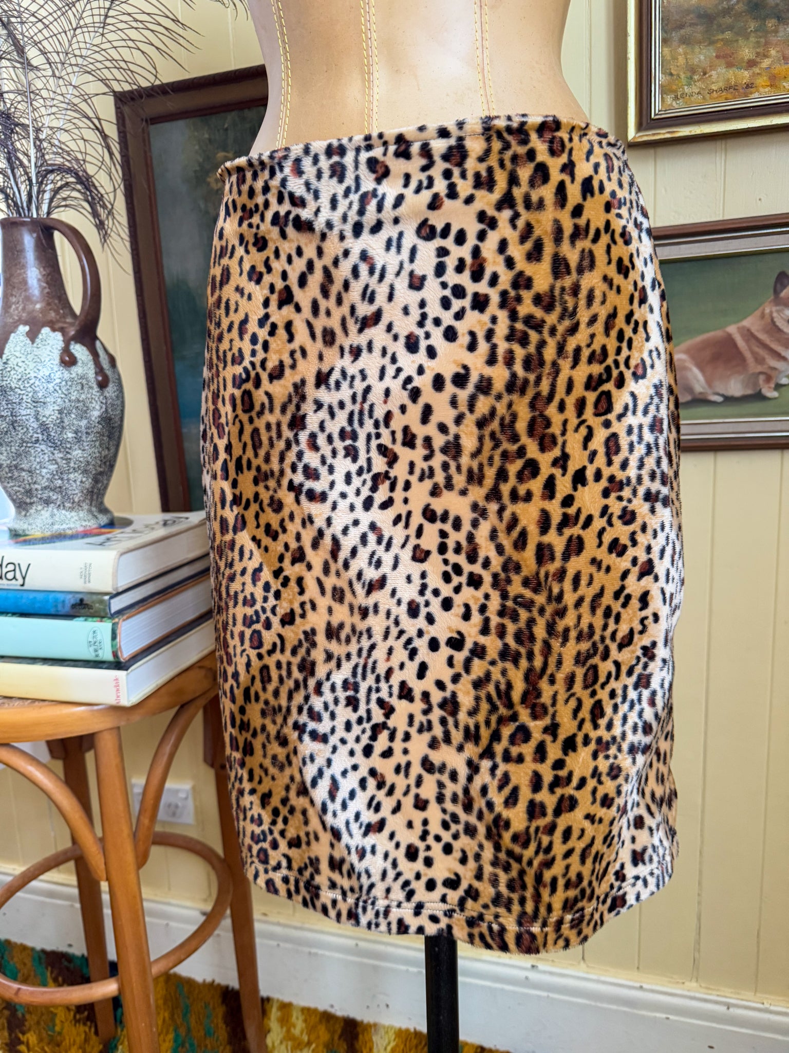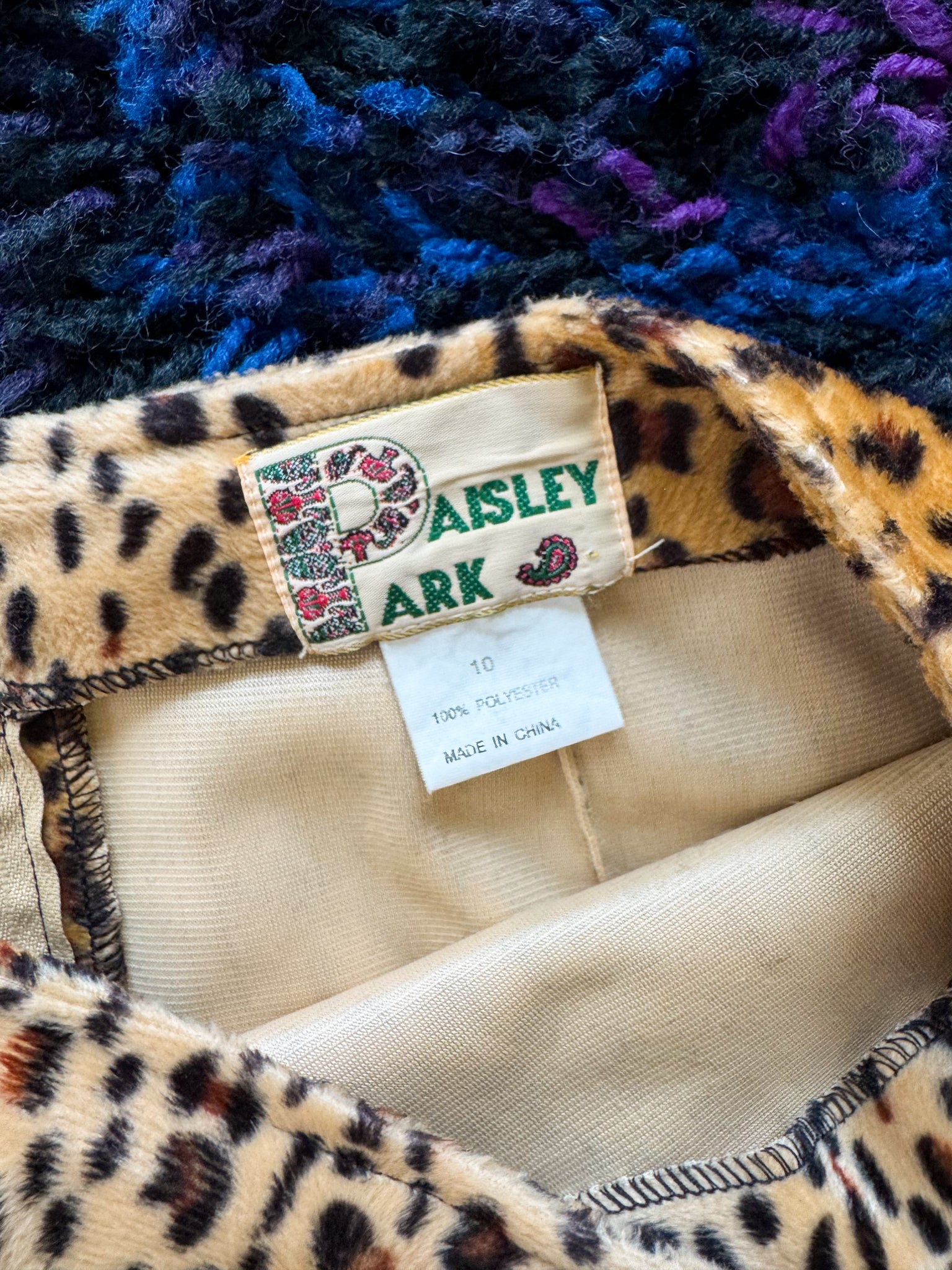 VINTAGE 1990S PAISLEY PARK LEOPARD FAUX FUR LEOPARD FITTED SKIRT M