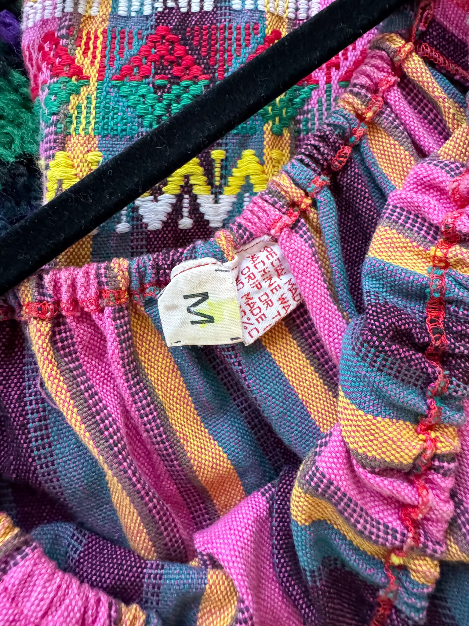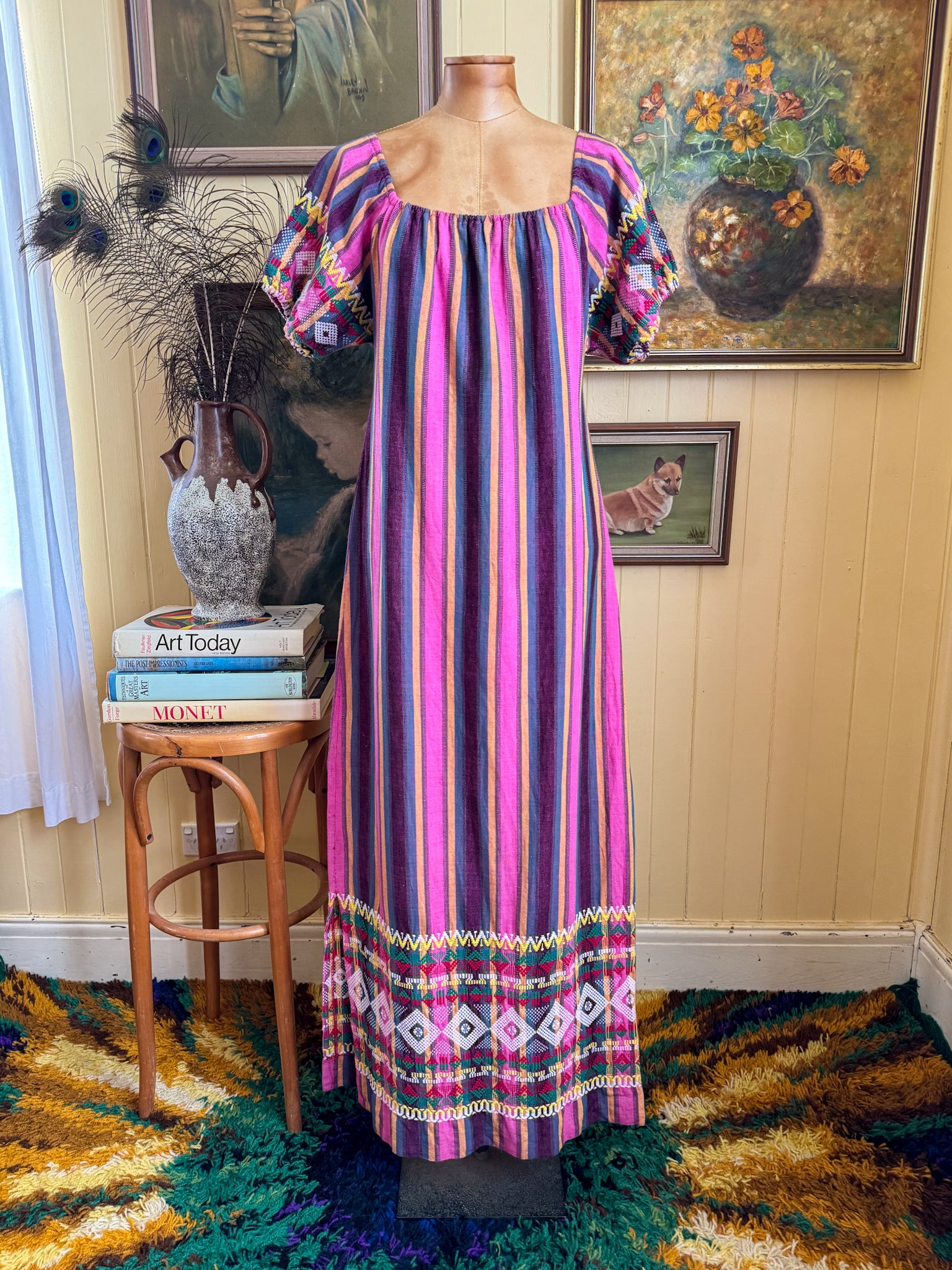 VINTAGE COTTON HANDWOVEN GUATEMALAN STRIPED EMBROIDERED MAXI DRESS M